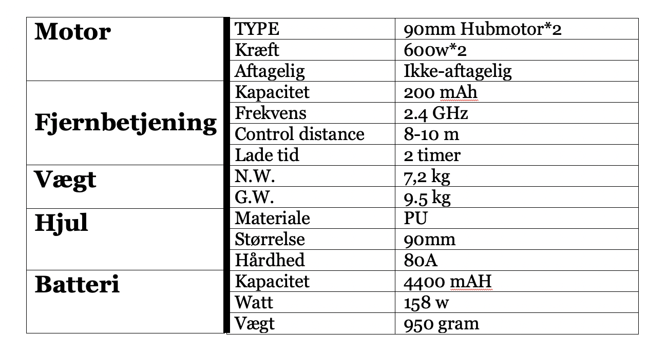 2x600w indbyggede hubmotorer som sender dig afsted med vildt optræk med en topfart på 45kmt